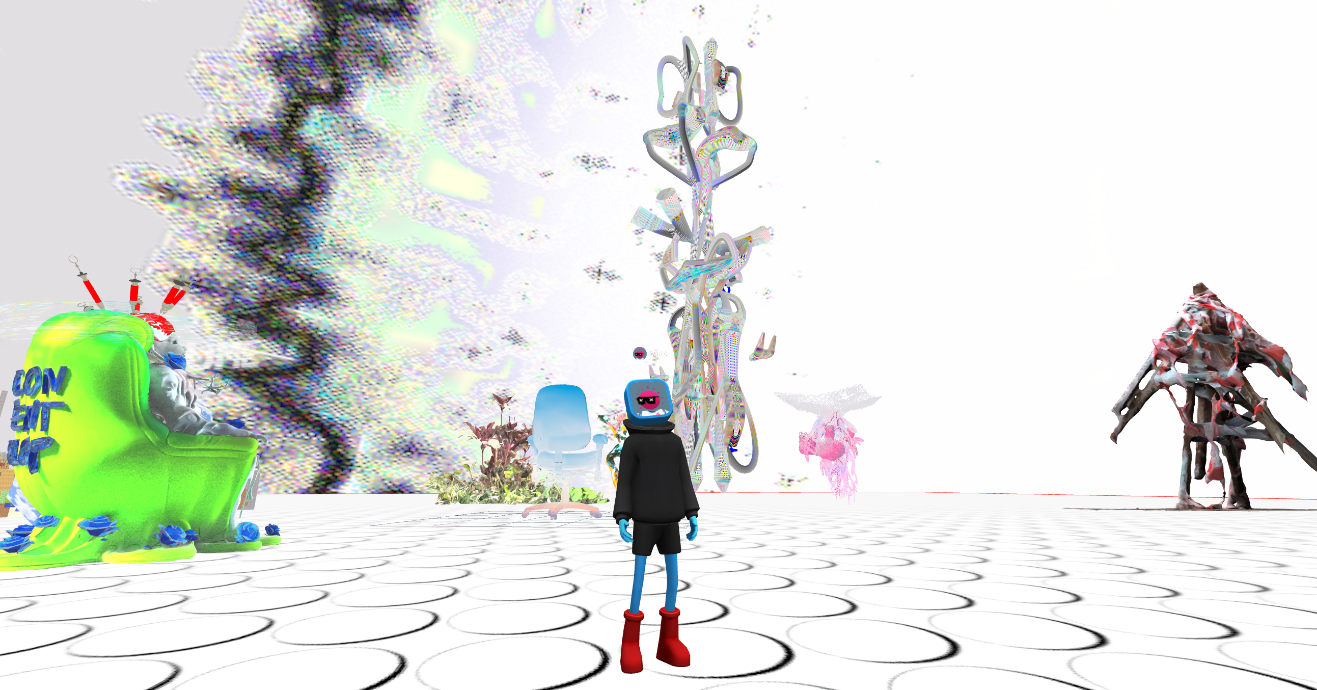 During the past couple of months I've been working on co-curating & project managing a digital art exhibition for Teia art community/platform, which included five Teia artists curated by our team and fed into a physical exhibition, "Tezos x RefractionDAO", held at the Nautilus Hotel in Miami (Dec 6-8th 2023) as a side event during Miami Art Week. Miami Art Basel was held at this time, in different venues. The physical exhibition resulted in a global meme on twitter due to their exhibition design — long story ::: #tezpole.