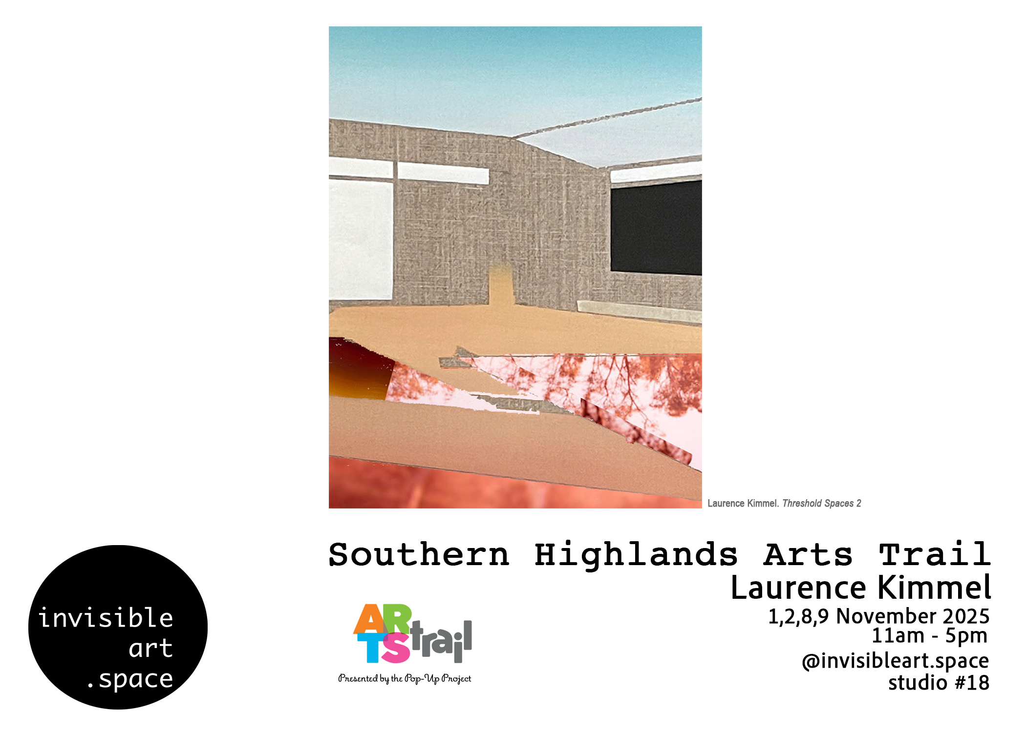 01-02 + 08-09 November 2025 (sat+sun 10am-5pm)::: invisible art space will be part of the Southern Highlands Arts Trail — studio #18", with artists Kath O’Donnell*** & Laurence Kimmel. The Balmain gallery space will be on a break during this time, whilst activities take place in the Highlands. There’s 42 artists opening their studios for visitors to see how they work. A great time to visit the highlands for a day trip or weekend away!
